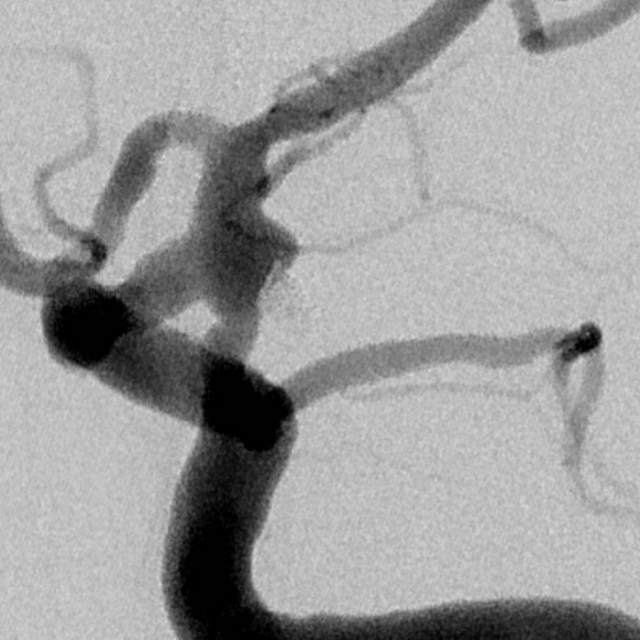 动脉瘤经过多年修炼,形态奇葩,大动脉瘤上长着小动脉瘤,小动脉瘤上长着微小动脉瘤,还累及粗大的胚胎型大脑后动脉,经过一期单纯栓塞,消除了出血风险,老人家顺利出院康复。