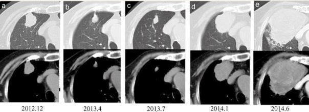 2014 年 1 月,肿瘤从1.8cm增加到4.8cm(图1d)。