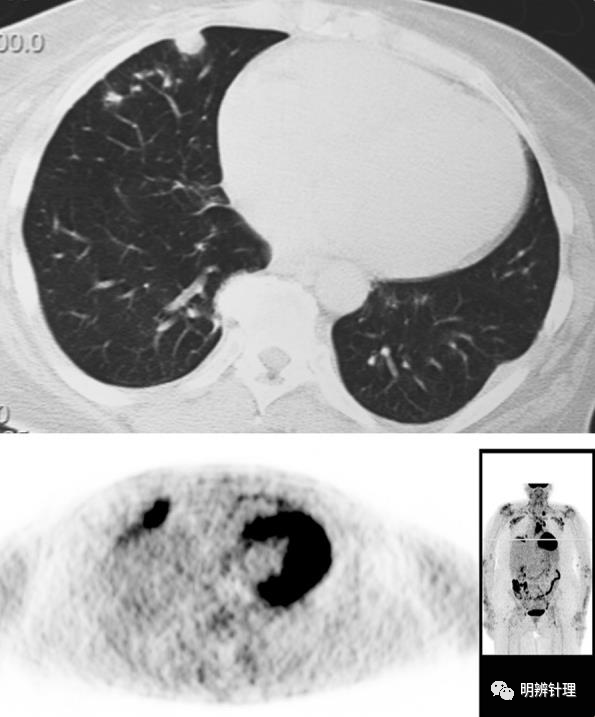 明辨肺结节(九十四)一个大结带几个小结,PET高代谢。