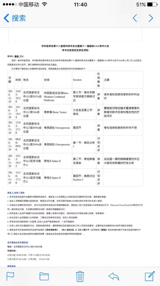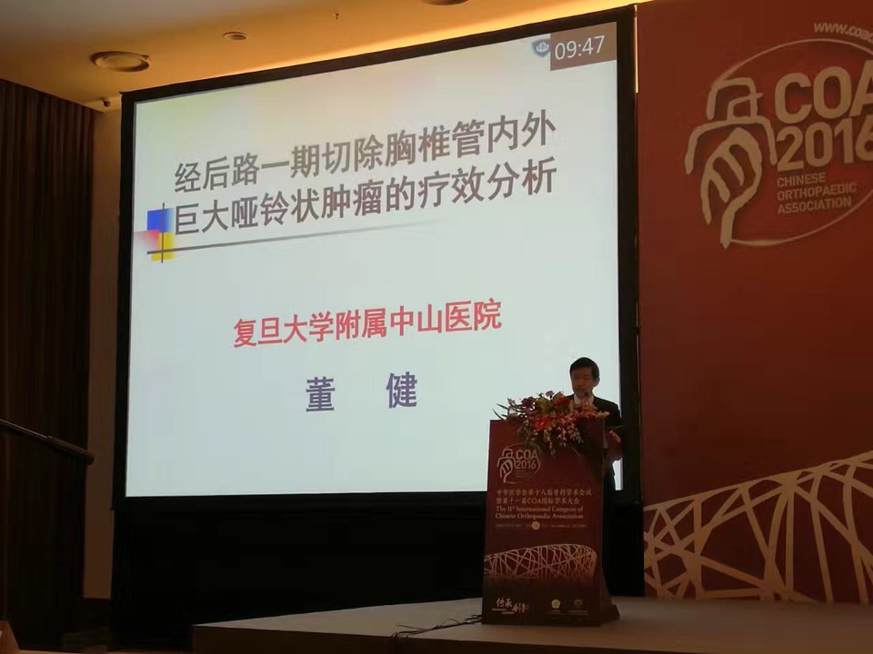 董健教授受邀参加中华医学会第十八届骨科学术会议 2016年11月21日 7903人阅读 返回文章列表 董健教授受邀参加2016年11月17-20日在北京举行的中华医学会第十八届骨科学术会议暨第十一届COA国际学术大会。这是每年一次最大的骨科会议,董健教授受邀参与四个会场活动:脊柱,肿瘤,骨质疏松,骨伤科,作两个大会受邀发言,两个一般发言,参加两个嘉宾讨论会,一个改选会,一个新学会成立会议,会场观众爆满,反响热烈。 顶 0 分享到: