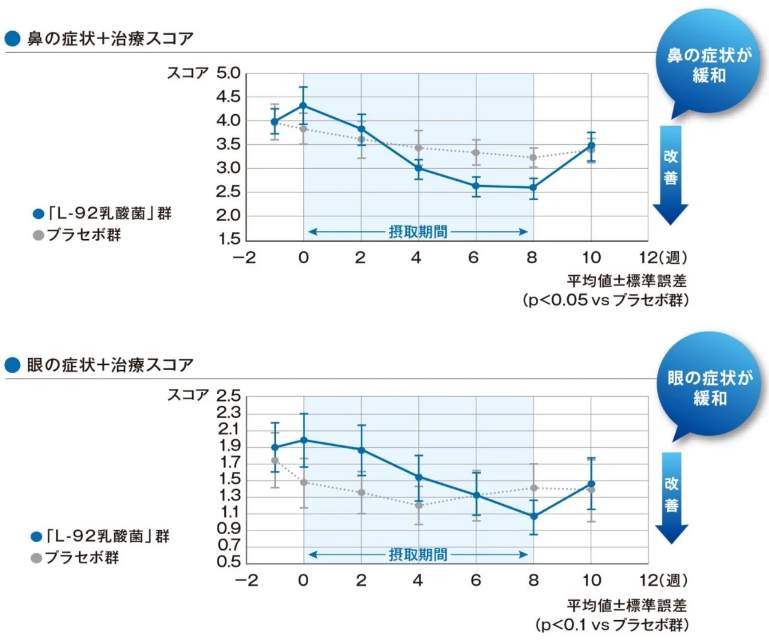 由此可见通过摄入「L-92乳酸菌」可缓解花粉症。