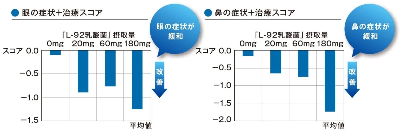 由此可证实通过摄取「L-92乳酸菌」,可缓和花粉症的症状。