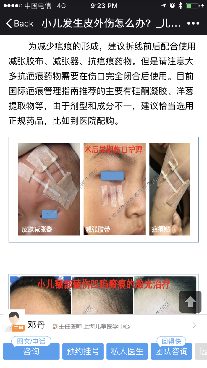 *** 完美的治疗还需要患者的配合和同行的支持,请参考附图及文章(小儿发生皮外伤怎么办? - 微医 https://sns.guahao.com/topic/46586216954527744,可转发)。