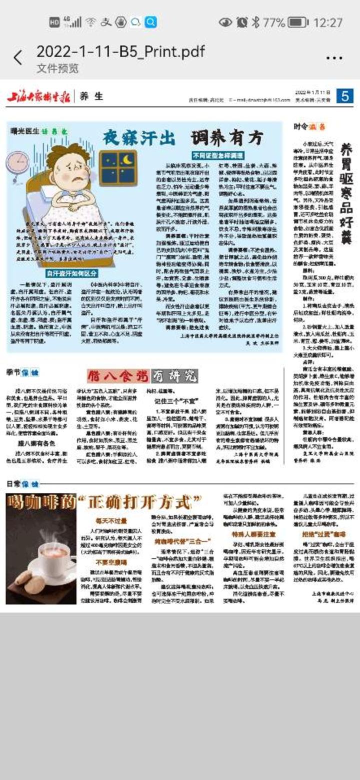 因此,小寒节气有异常出汗的情况,应当到医院由医生系统诊断,排除西医疾病(甲亢、更年期综合征等)和进行中医分型,有针对性的进行药物治疗,改善出汗症状。