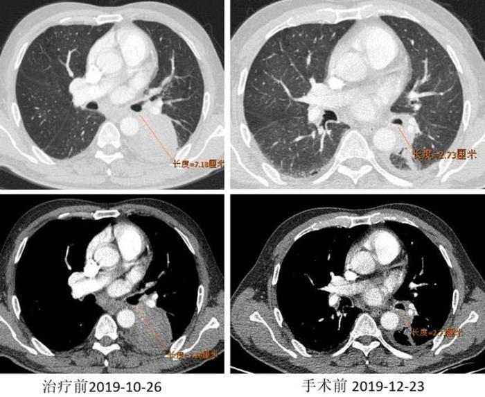 诊疗经过:两周期免疫治疗联合化疗方案。2019.01.03 行“VATS辅助左肺下叶切除术”。