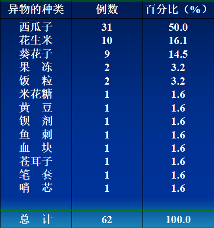 论语有载:“食不语,寝不言”,气道异物好发于儿童,多在5岁以下,且3岁以下的病例占2/3,气道异物的临床表现主要与异物的大小和停留的部位有关,由于相当一部分气管、支气管异物的病人可能会没有症状或仅有轻微的症状,只有一半左右的病人能够追问出病史,所以诊断可能会有明显的延误。国外报道的支气管异物最长的延误时间达到惊人的45年。所以,如果有可疑的异物吸入史及相关症状,要警惕异物吸入气管或支气管的可能性,及早行胸部CT检查。简单的胸透或胸部X片检查能显像一部分异物,但对于一些可透光的异物并不能很好的显影。即使是胸部CT,也不能完全排除气道异物。所以,当临床怀疑有气管支气管异物的潜在可能时,不能通过正常的影像就完全排除异物的诊断,特别是有呛入异物病史时,有必要用纤维支气管镜进行检查。一旦确诊气道异物,应当尽早移除异物,异物已进入气管或支气管,自然咳出的机会只有1%~4%。据北京儿童医院统计,每年约有500-700例患儿因异物就诊,我院每年也有100-200例气道异物患儿。