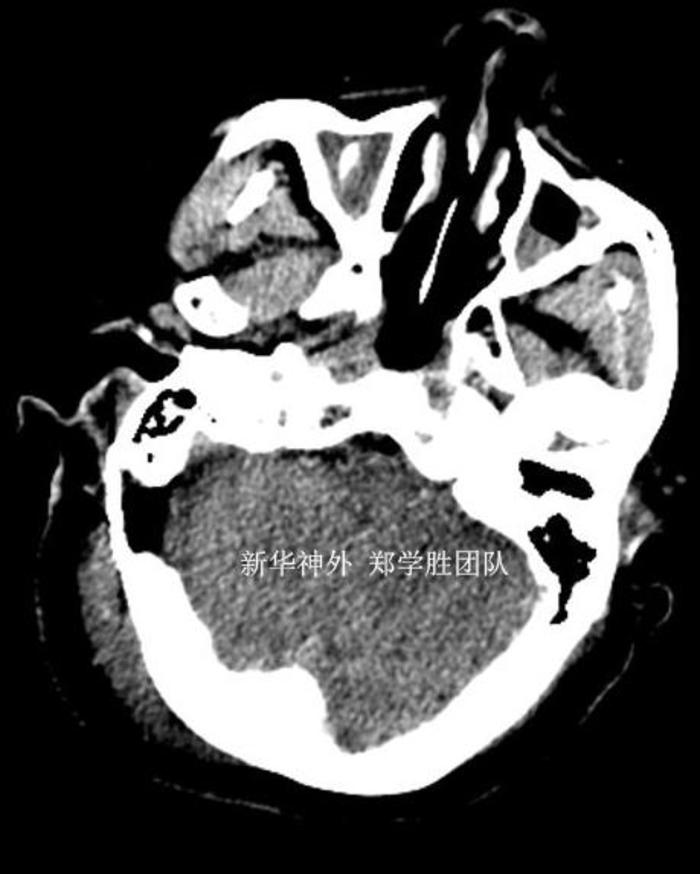 手术顺利,术中发现是小脑上动脉呈袢状严重压迫三叉神经,予以完全减压。术后复查CT,手术部位没有任何出血,予以中性治疗。