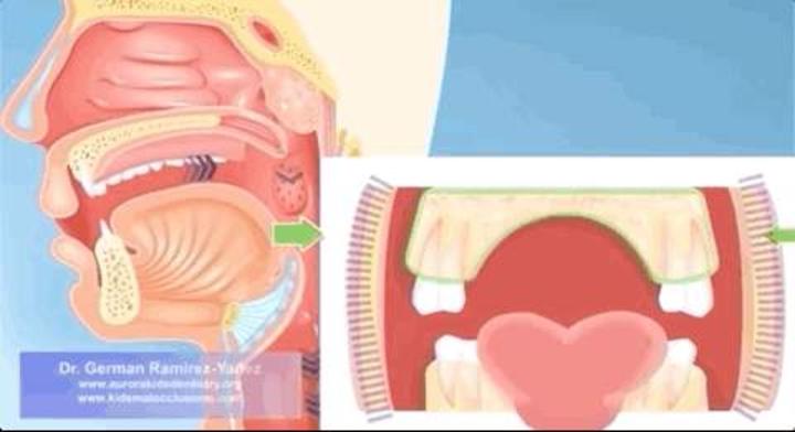 如果鼻子长期不通气,那么孩子只好长期靠嘴巴呼吸。在这种口呼吸模式的影响下,孩子的五官会受到一些异常力量的牵拉,经年累月,孩子口腔、颜面部的一些骨骼肌肉随之发生变形,从而出现牙齿前突、嘴唇上翘、硬腭高拱等腺样体面容的表现。