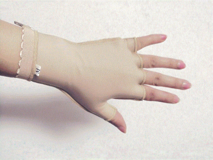 3, 压力治疗:常见有弹力衣,弹力套等;它们主要通过对瘢痕产生持续压力,使瘢痕内血管管腔变窄,减少瘢痕组织血供,抑制瘢痕组织增生。压力不能太大,不然会影响肢体血液循环;也不能太小,不然对瘢痕组织起不到治疗作用;因为不同的个体高矮胖瘦不同,压力套常需要量身定制,才能达到比较好的治疗效果。弹力套理论上需要24小时佩戴,常需佩戴半年以上。