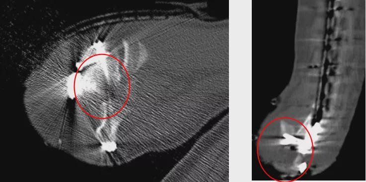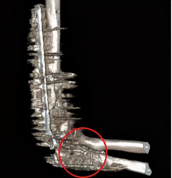 内固定螺钉穿出进入关节