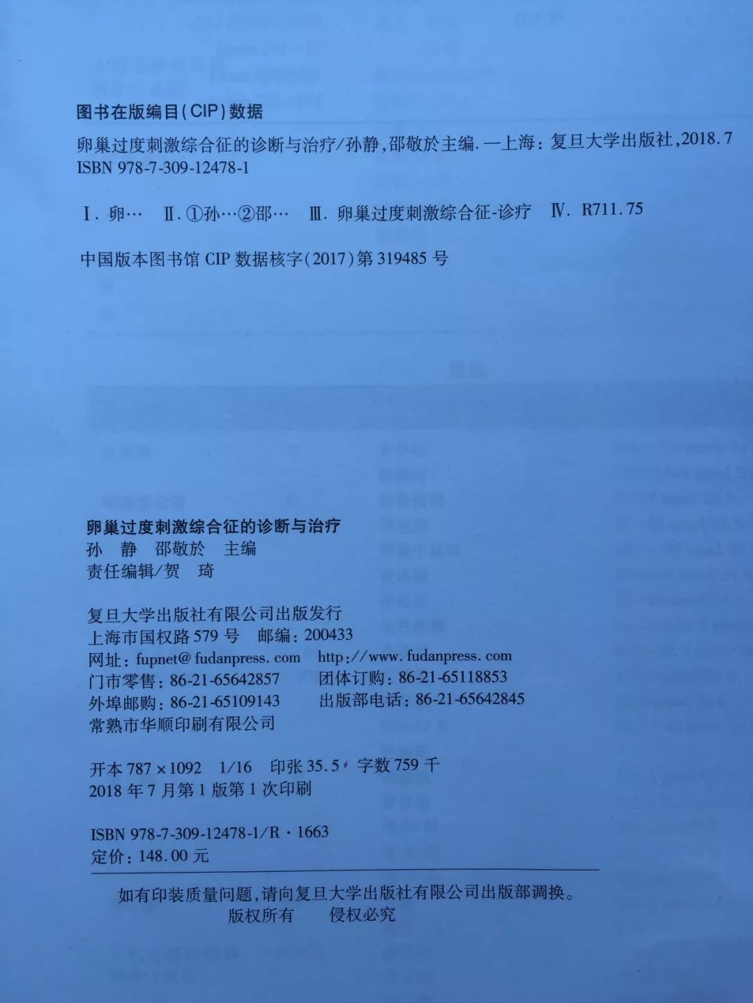 洪岭医生参编的一部专著《卵巢过度刺激综合征的诊断与治疗》于2018年7月在复旦大学出版社正式出版和发行!