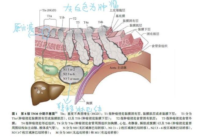 食管癌侵犯深度的分期彩图 第8版食管癌分期TNM定义彩图