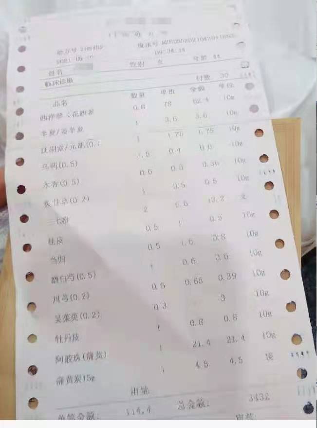 我发现在临床上治疗子宫腺肌症的由19味中药组成的奇方中药汤剂一个月只吃22天的中药费用1580元(含有包装及派送费用),有些患者就接受不了,总认为很贵了!看一看,比一比上面这二位患者所服用的一个月费用来对照,你还敢说1580元贵?