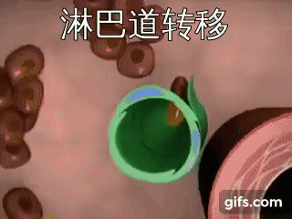 上图中咖啡色的肿瘤细胞可以通过绿色的淋巴管到达颈部淋巴结而形成转移,这种转移途径称做为淋巴道转移