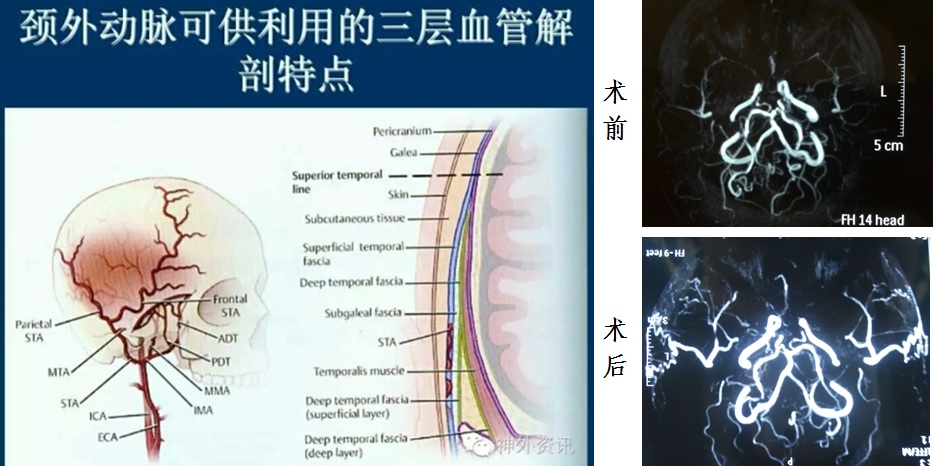 经常有家属问起我关于手术切口的问题,在此我做下统一答复。这个问题要从烟雾病的治疗策略说起,目前由于烟雾病病因不明及颅底病变血管位置较深,各种烟雾病的治疗策略均着眼于通过多层次的血管融合改善大脑血供,类似于“南水北调”或者“拆东墙补西墙”,有别于多数疾病的病因治疗策略。