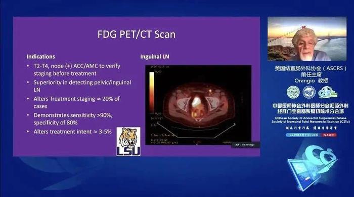 美国结直肠外科医师协会(ASCRS)前任主席Guy R. Orangio教授 分享了“肛管肿瘤诊治进展”。肛管癌是一种罕见癌症,其发病与HPV感染密切相关,他通过数例经典病例介绍了肛管癌的常见临床表现及典型影像学特征,回顾了肛管癌治疗方法的发展历史,提示放化疗效果不劣于手术治疗,并特别介绍了HPV疫苗等预防措施。