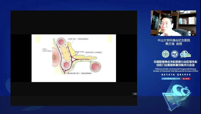 中山大学孙逸仙纪念医院胃肠外科主任韩方海教授发表演讲“右半结肠的膜解剖和腔内吻合”。右半结肠的系膜床包括胃结肠系膜间隙、胰前Treitz筋膜、Toldt融合筋膜间隙等,对手术操作影响较大。韩方海教授介绍了“膜解剖”的概念,指出膜解剖间隙辨识要点、保持膜完整性的操作技巧和右半结肠手术标本的质控标准(中山逸仙标准),最后讲解了吻合方式的选择方法。