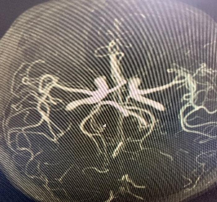头颅MRI:双侧额顶叶白质、基底节腔隙灶,未见新鲜梗塞,枕大池囊肿。