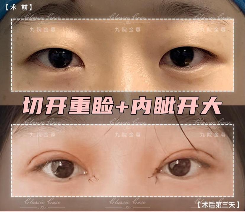 #九院金蓉整形案例#切开重睑+内眦开大术后第三天 2021年04月27日 7855人阅读 返回文章列表 为什么要做双眼皮?我们看看这位求美者的双眼皮术后效果就明白了,能让眼睛变得更加明亮有神。求美者术前眼睛是单眼皮肿眼泡的形态,有内眦赘皮,眼睛看起来无神。经切开双眼皮加开内眼角手术,术后眼裂增大,双眼皮为自然款的开扇形。术后3天,恢复的很好,肿胀非常轻微,重睑线流畅自然,等完全恢复后会更加好看。 顶 0 分享到: