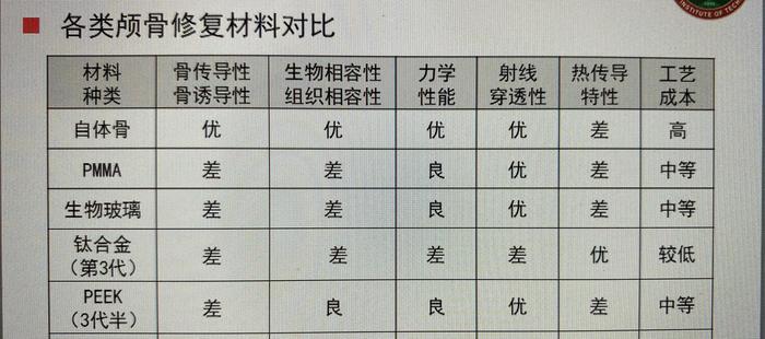 聚醚醚酮PEEK材料修补颅骨,优势明显,未来有完全取代上一代材料的趋势,目前唯一不足是价格偏高,医保报销比例不高。期待原材料早日国产化,期望未来国家医保政策优化,惠及更多需要帮助的患者。