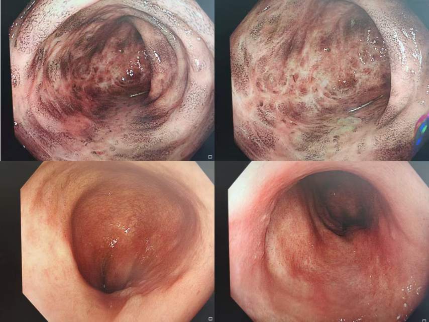 溃疡性结肠炎中药不比西药差啊 2021年04月14日 7964人阅读 返回文章列表 这位距肛60cm广泛结肠病变溃结患者,初诊肠镜下好比溶洞,血便5次伴腹痛,crp,esr,plt等炎症指标明显升高,白蛋白25g,血色素7.5g,按照常规肯定激素治疗起手,然而经过我们科室治疗, 单纯口服中药2周大便成型,无肉眼血便,看着她好起来,4个月维持治疗至今复查,肠镜下虽有中药色素沉着,但是大量疤痕修复,黏膜愈合,临床缓解,其他指标一切如常。甚是欣慰! 顶 0 分享到: