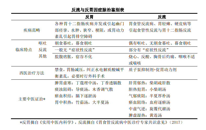 蒋健教授认为胃食管反流病存在“机制性反流”与“症状性反流”两类。机制性反流泛指胃内容物反流入食管的病理机制;症状性反流则是指在无恶心、无干呕、无腹部收缩、不用力的情况下,出现胃内容物上溢至食管、咽部或口腔,多于餐后1小时出现,卧位、弯腰或腹压增高时可加重,部分可发生在夜间入睡时。症状性反流必定存在机制性反流,但机制性反流未必存在症状性反流。蒋健教授治疗症状性反流的临床经验大抵如下。