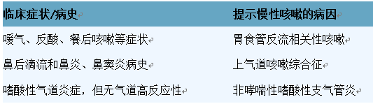 典型的咳嗽特征对CVA诊断就有指向性,夜间咳嗽在CVA中发生率为66.2%,是CVA高度特异性的预测因子。临床症状及病史有助于鉴别慢性咳嗽的其他病因(表1)。