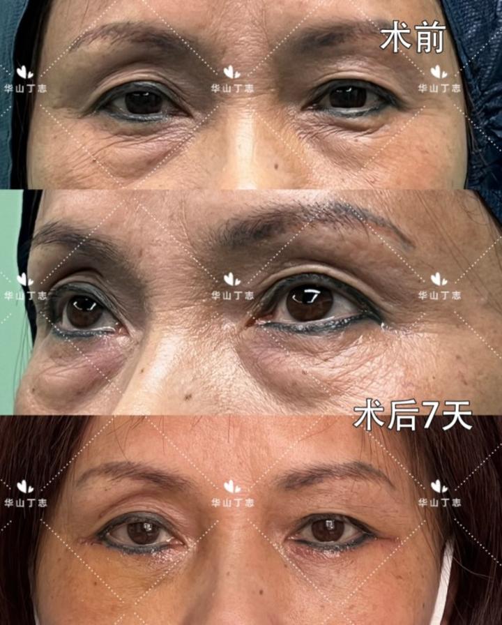 不少女生担心外切眼袋术后疤痕的问题,今天分享一位55岁阿姨,外切眼袋术后7天的恢复情况!