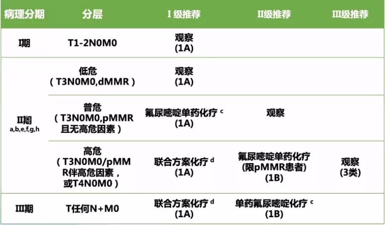 结直肠肿瘤辅助化疗方案 2020年04月27日 8038人阅读 返回文章列表 II期患者高危因素为: T4(IIB、IIC期)、组织学分化差(3/4级,不包括高度微卫星不稳定即MSI-H者); 脉管浸润、神经浸润; 肠梗阻、肿瘤部位穿孔; 切缘阳性或情况不明、切缘安全距离不足; 送检淋巴结不足12枚。 II期低危:T3N0M0,错配修复缺陷(dMMR); II期普危:T3N0M0,错配修复正常(pMMR)且无高危因素; II期高危:T3N0M0/pMMR伴高危因素,或T4N0M0。 顶 0 分享到: