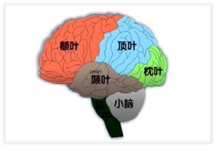 我们人类的情感和思维都离不开大脑的活动,人的大脑皮层就像“司令部“,它能整理大脑里各种信息。一般把它分为四个区:掌管感觉的顶叶,掌管语言的颞叶,掌管人感情和智力的额叶以及位于头后部的枕叶1。四个脑区就犹如司令部下设的职能部门,不同脑区发挥的功能就如同这些部门履行的职责(如战斗、支援或勤务等)。
