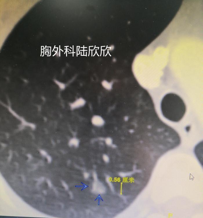 第一个病人有一个6.4*6.4毫米磨玻璃结节。其他医生都考虑是不典型腺瘤样增生(癌前病变)或炎性。我和病人说:你的磨玻璃结节不是标准的球形。如果仔细看,局部稍凸起一些,像是原位癌。病人心理焦虑,严重失眠。后来做了手术。手术后的病理果然是原位癌。