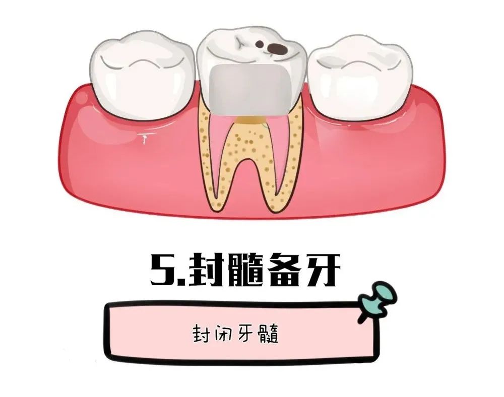 5.封闭牙髓,填补牙齿的钻洞,或安装牙冠。