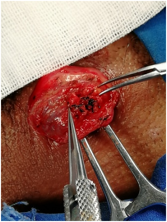 (2)外环下精索位置表浅,容易操作:该切口精索位置表浅,损伤小,操作简单,手术缝合解剖层次少,术后感染率极低。