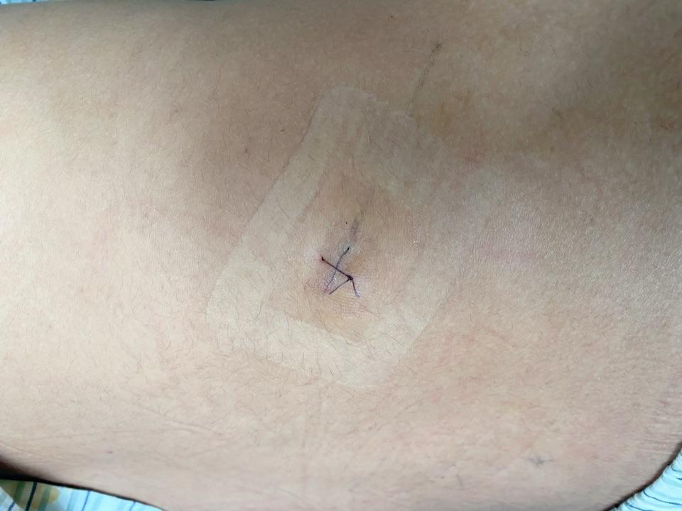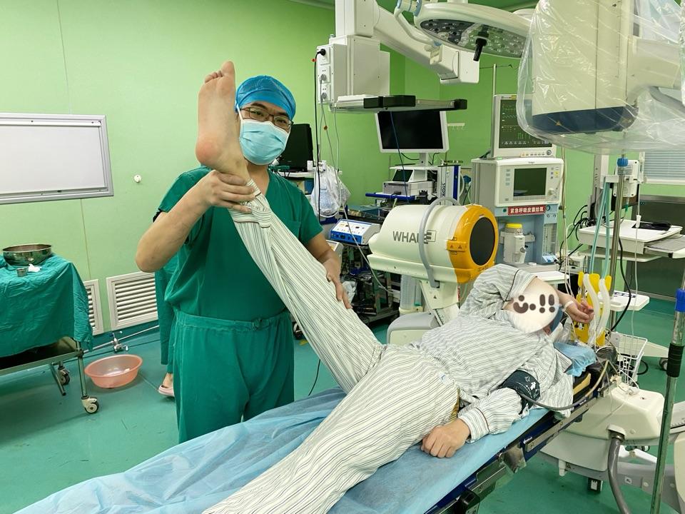 0.5cm的微创切口,术后次日出院,丢弃轮椅,恢复正常行走