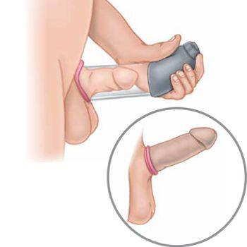 真空负压吸引治疗时,常以收缩环置放阴茎根部,阻滞静脉回流以增加勃起强度。收缩环务必于置放30分钟内取下,以避免组织坏死。常见不良反应如疼痛、射精无力、瘀点、擦伤或麻木等。禁忌症为凝血功能障碍或抗凝治疗患者。更适用老年,能掌握相关操作,性生活不频繁者。
