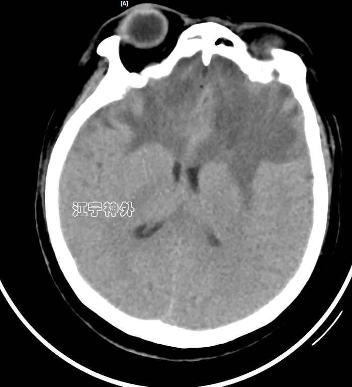 术后第二天复查CT,显示术野无明显出血,脑组织肿胀明显。