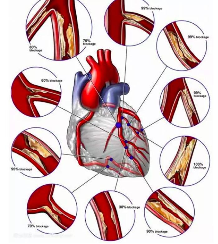 2、血管狭窄50%以上:就是大家平常所谓的“冠心病”,全称是“冠状动脉粥样硬化性心脏病”。此时极容易发生我们平常说的“心绞痛”,要积极药物治疗。