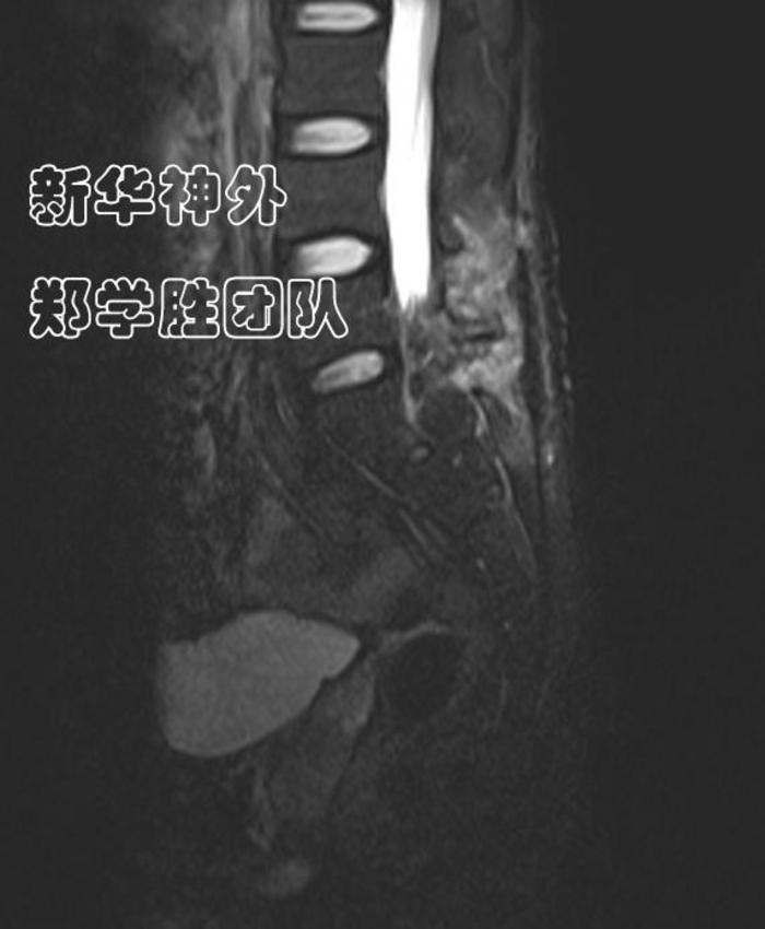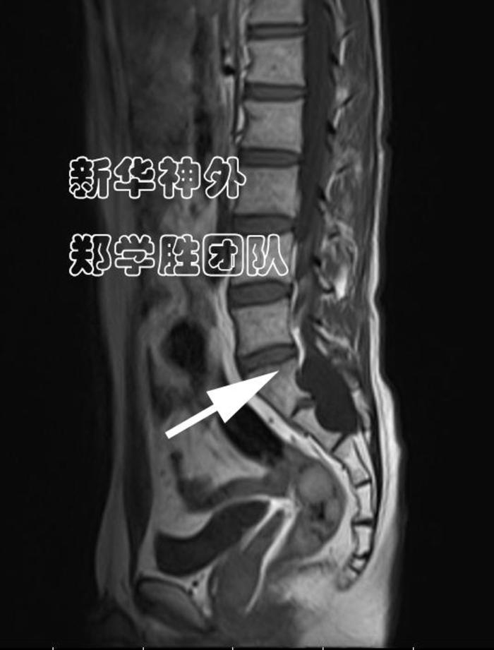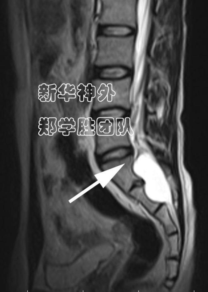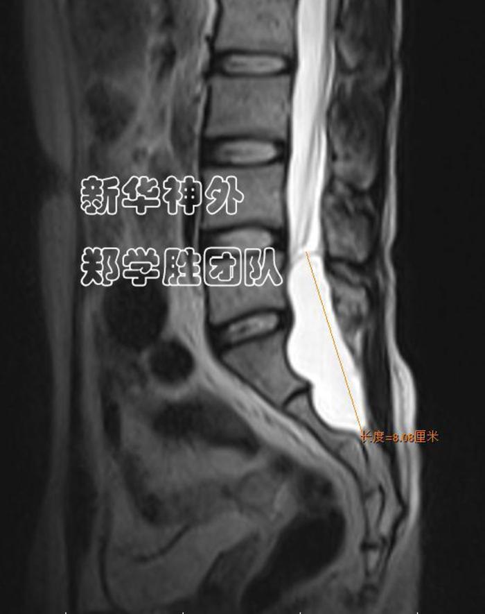 术前MRI显示:8cm巨大腰骶管囊肿;