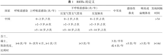 什么是反复呼吸道感染呢?顾名思义,如果孩子在1年内频繁出现上、下呼吸道感染,超过正常范围,就称为反复呼吸道感染。多见于小儿(0~14岁),特别是婴幼儿及学龄前儿童(0~6岁)。根据患者的年龄、感染呼吸道的部位不同,关于“反复感染的次数”定义的判别参考下图。*中国对于反复上呼吸道感染的定义是,0~2岁婴幼儿超过7次/年,>2~5岁幼儿超过6次/年,>5~14岁超过5次/年;反复下呼吸道感染分为反复气管支气管炎和反复肺炎,其中,“反复气管支气管炎”是指0~2岁的婴幼儿超过3次/年,>2岁~14岁超过2次/年,而每年患肺炎超过2次,无论年龄,即可定义为反复肺炎。每次发病间隔时间要超过7天。