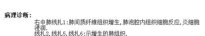 病理是肺组织纤维增生反应,和肺泡腔内的组织细胞反应。是良性的疾病。病人不用成天提心吊胆过日子了。