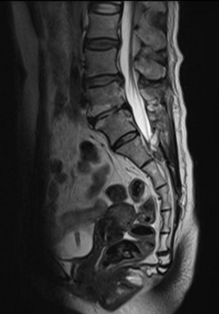 中年女性,骶管小囊肿,当地医院2年前手术,术后症状加重,骶尾臀部剧烈疼痛,VAS 7分,不能站、立、行超过15分钟,术后至今每天服用止痛药。从影像来看,骶管囊肿并不大,为何术后疼痛这么明显呢?应该怎么处理呢