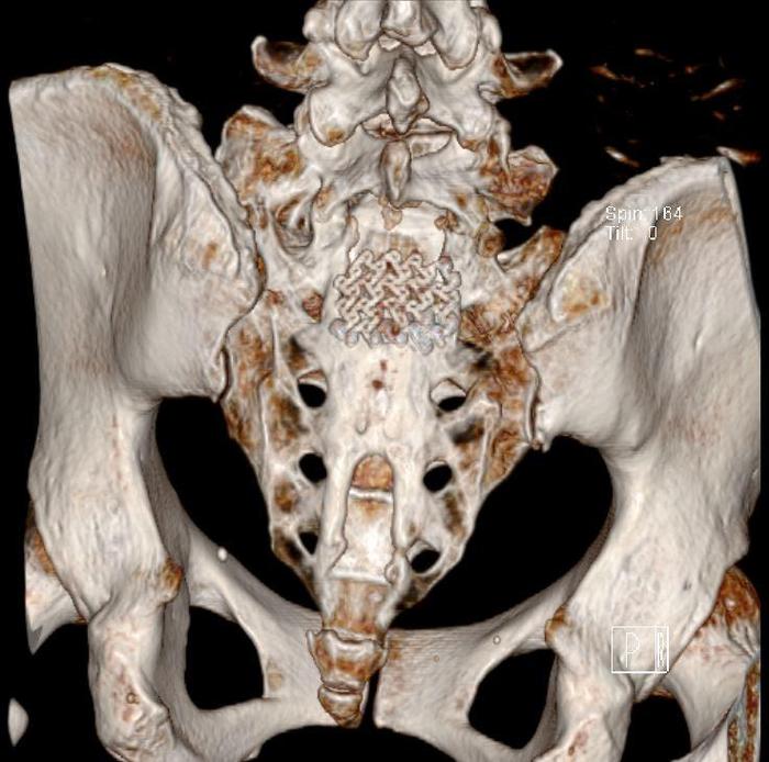 术中:1. 骶管囊肿虽然很小,但漏口很大;予以严密的封堵;2. 由于初次手术未修补骶骨骨窗,所以患者不能久站,本次手术用钛板修复骨窗,重建一个骨性的压力屏障。