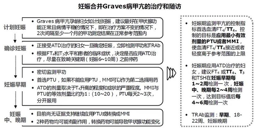 《指南》对妊娠合并甲亢的管理进行了相关推荐,尤其是针对妊娠合并Graves病甲亢(图2),《指南》明确了从计划妊娠开始到妊娠中晚期管理的注意事项。