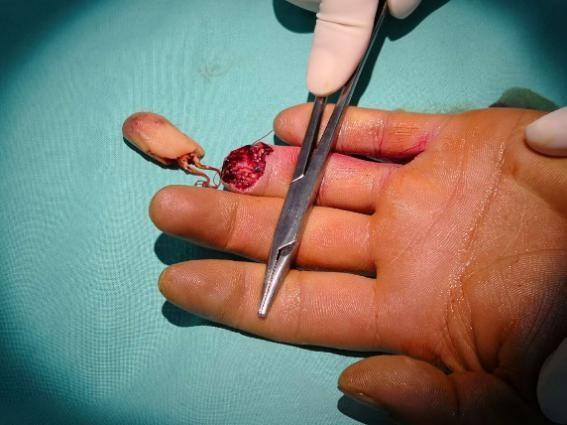 血管接好之后,尝试性的放开之前被关闭的动脉,血流通畅,同时吻合口也没有漏口。医生便放心的进行下一步,把神经也接上。当断指重新恢复血色,手术也基本算是成功了。但其实,到这里治疗才进行到一半。