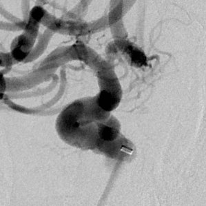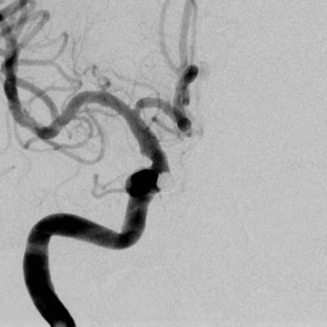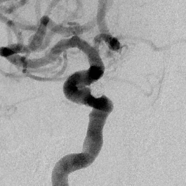 啥也别说了,赶紧去做脑血管造影备治疗吧,结果发现颅内一个炸弹💣(颅内动脉瘤),而且长在一个不太容易破裂的部位(床突旁),形状也不太规则,上面还有一个细长的小泡(破裂点),破裂机制:这个破裂小口,多次小量出血,通过反复的脑脊液循环大部集聚到了腰大池,出现了颅内几乎看不到啥异常而腰大池内为血性不凝脑脊液的巨大反差,血液在蛛网膜下腔进一步刺激神经根,才导致了脖子疼和腰疼~~~,但是,这是脑动脉瘤反反复复破裂出血导致的哦,细思极恐………