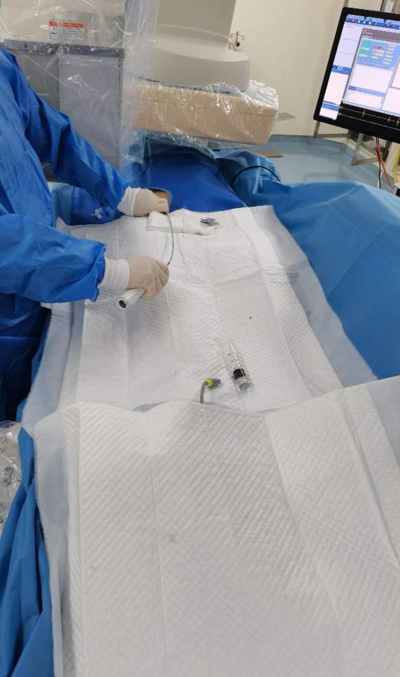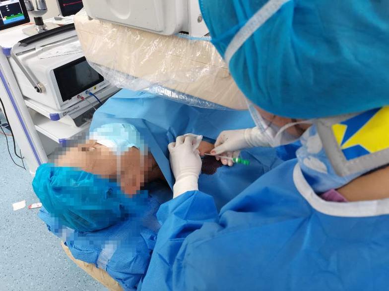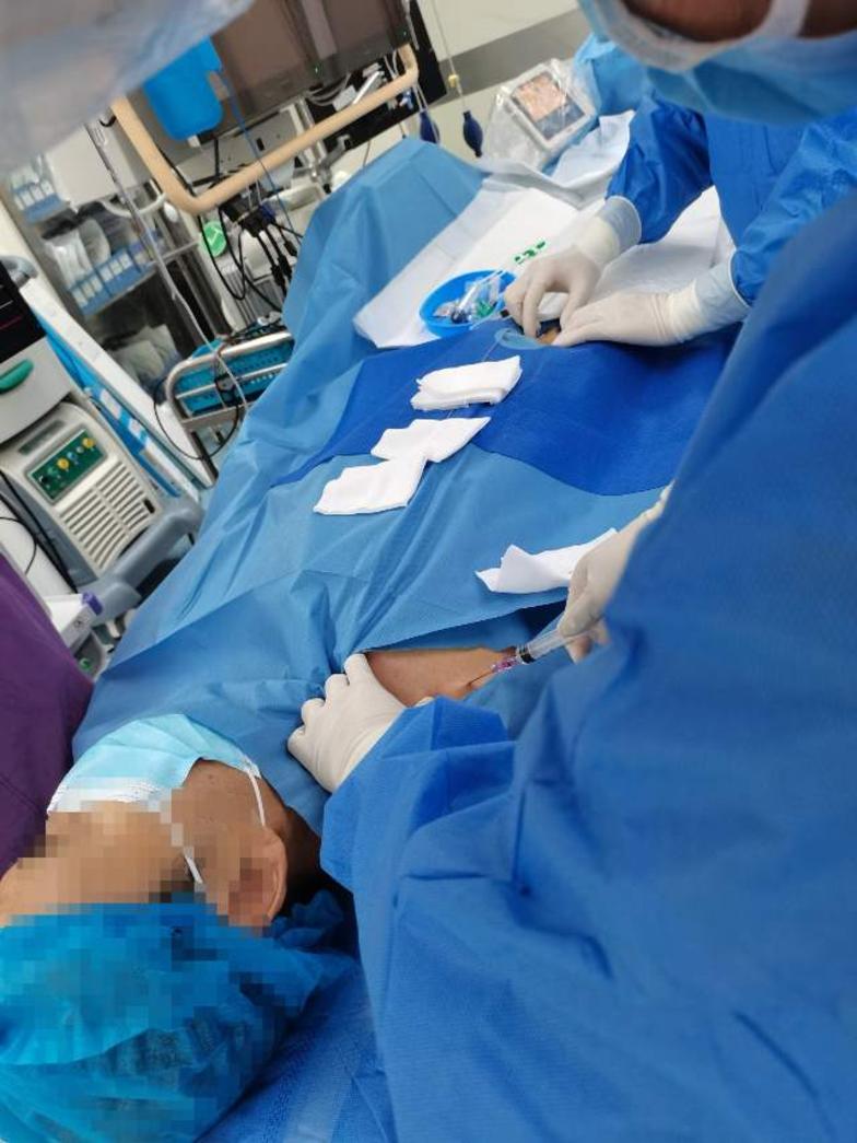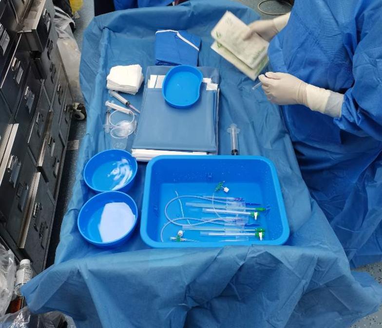 2.消毒铺巾、腋静脉、股静脉穿刺置入鞘管