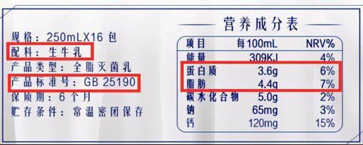 配料表:可告知该食品是由哪些主要原材料构成。配料表的成分应按照“用料量递减”原则排序,也就是说含量最多的排在第一位,后面依次减少。如牛奶制品配料第一位多是生牛乳、乳粉或奶酪等,营养多丰富,蛋白质和钙含量高;而含乳饮料/饮品配料第一位多是水,排后面的可能是白砂糖、生牛乳、乳粉等,往往是高糖饮料,营养价值远不及牛奶制品,两者不能混淆。特别是儿童青少年,应养成喝牛奶的好习惯,避免高糖低营养密度的饮品,减少肥胖、龋齿等患病风险。