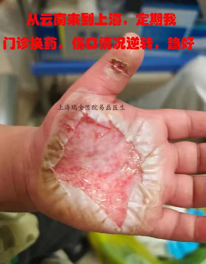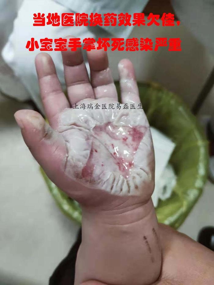 小宝手重度烫伤,不远千里来上海求医,经过系统门诊治疗,恢复佳