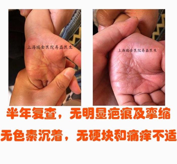 转眼间抗疤痕治疗半年结束,小孩没有出现手掌疤痕增生,没有瘢痕挛缩,没有出现手部畸形,局部严重烫伤区域没有色素变化及硬块,手掌柔软如初,手部无痒痛等不适。小患者和家属都开心极了。