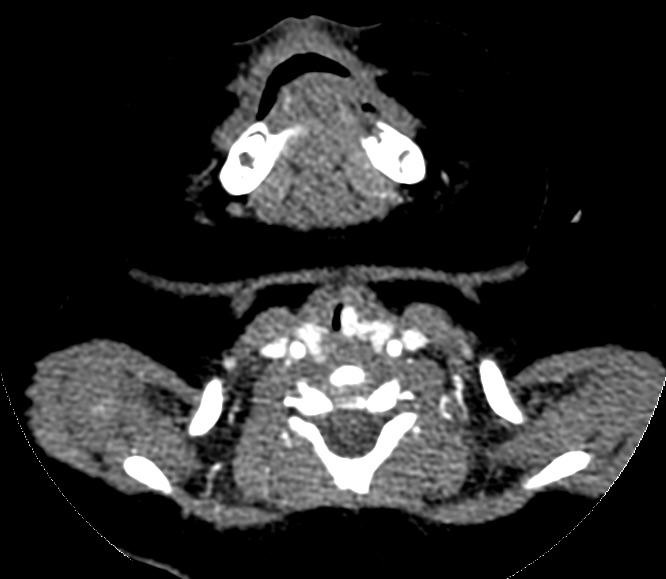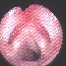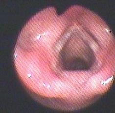 1.2诊断标准与方法对于可疑SGH患儿均需行纤维喉镜检查,声门下单侧或双侧局部隆起,表面光滑、暗红色,阻塞声门下气道,则高度怀疑SGH(图1)。颈部增强CT见声门下局部软组织增厚,气道变窄,增强扫描强化明显(图2a,b,c),诊断明确后给药。